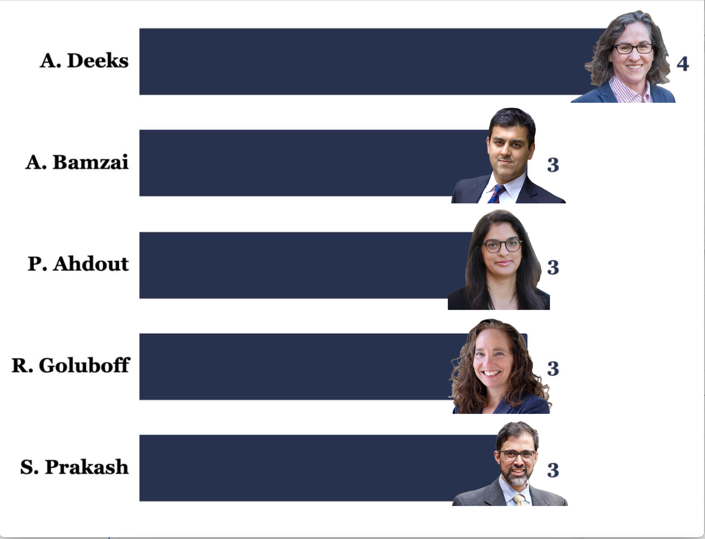 Welcome back to the Docket Duel! Professors Bamzai, Ahdout, Goluboff, and Prakash round out a four-way tie for second while clear winner, Professor Deeks takes the lead with four docket mentions since the beginning of the semester. This is due to her new book, The Double Black Box, and subsequent book party— “DeeksFest 2025”—as Professor Asaf Lubin of Indiana University Maurer School of Law termed it. Wahoo!
