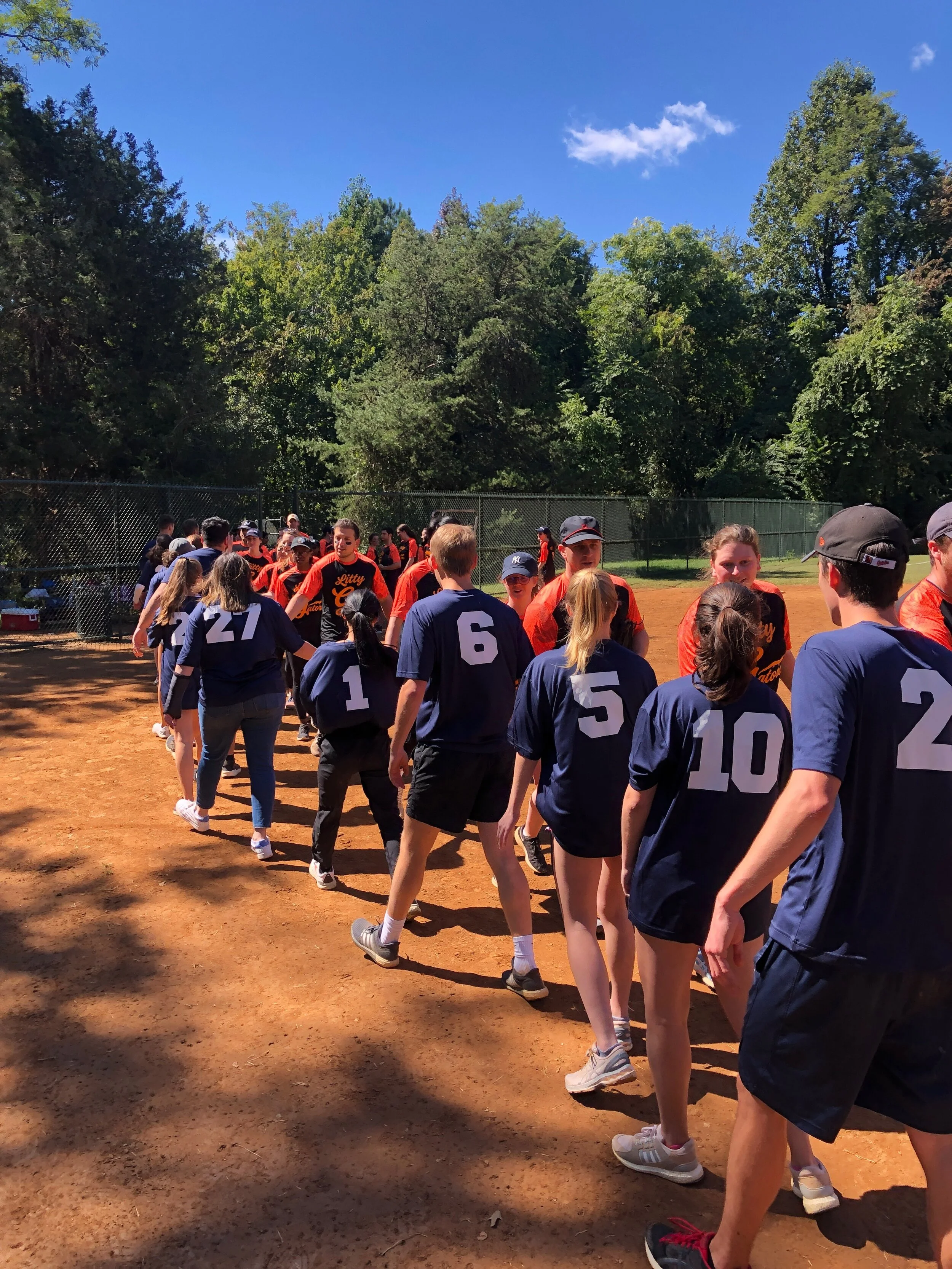 : Sections B and G shake hands. Photo Courtesy of Roni Courtney '22