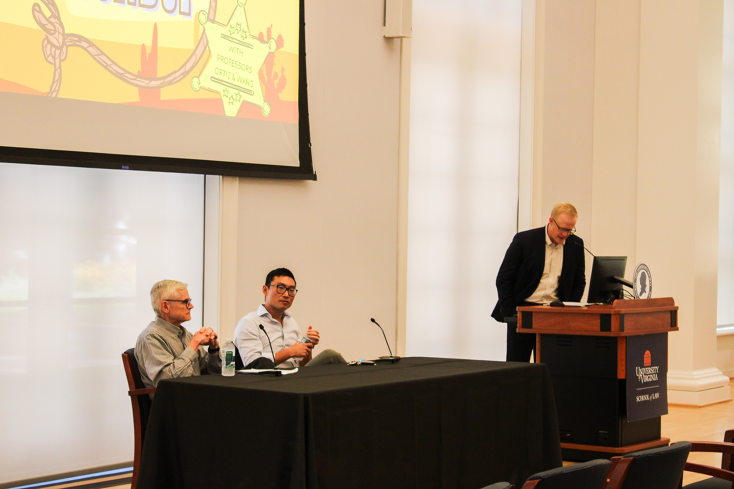 MONDAY, SEPTEMBER FIRST – Professors Xiao Wang and Daniel Ortiz presented highlights from the 2024 October Supreme Court term at an event organized by the Federalist Society. Professor Wang leads the Law School's Supreme Court Litigation Clinic, which Professor Ortiz formerly directed from 2003-2023. Professor Wang covered three religious liberty cases and the three cases that his clinic, the Supreme Court Litigation Clinic, brought before the Court (and won) this past year. Professor Ortiz gave overviews of Trump v. CASA, Free Speech Coalition v. Paxton, and emergency appeals heard on the Court’s non-merits docket (popularly referred to as the shadow docket). “I’ll go from . . . maybe least controversial to maybe most controversial,” started Professor Wang, speaking on the religious liberty cases. He began with Catholic Charities v. Wisconsin, where the Court overruled the Wisconsin Supreme Court 9–0, deciding that despite the fact that the charity “was not actively proselytizing the Catholic faith,” they should still be tax-exempt. The ruling was based on two arguments: a a “Church Autonomy” argument (“‘we’re a church, we get to decide what’s religious and what’s not’”) and a “nondiscriminational” argument (“we don’t proselytize Catholicism when we give out food and shelter, but if a Muslim or Jewish charity does the same thing and they get the exemption, then that’s discrimination”). Professor Wang called the church autonomy argument “dangerous” if taken to its end, and the nondiscriminational argument “more palatable.”