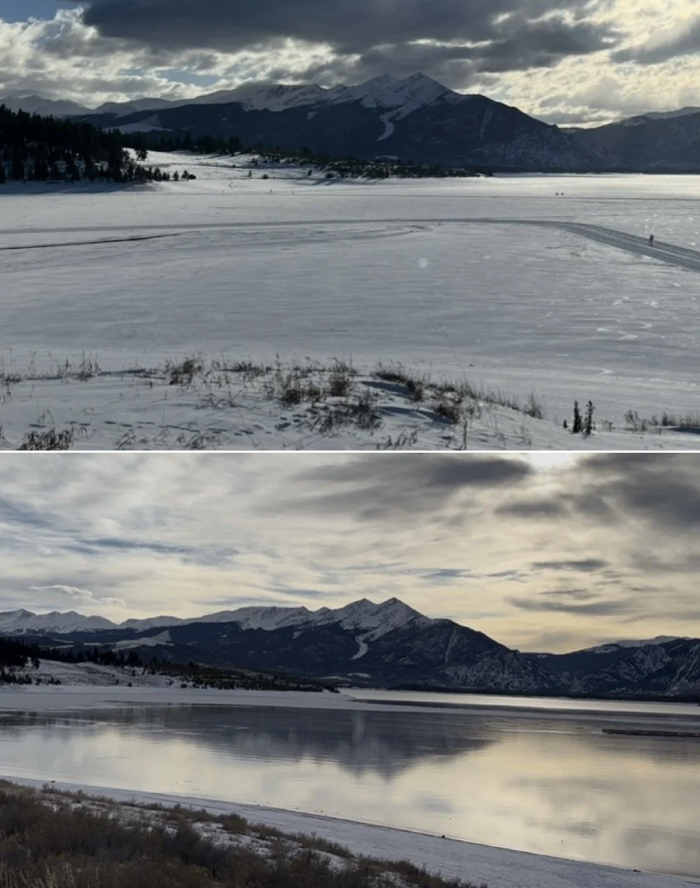 Dillon Reservoir in Summit County, CO in Jan 2025 (top) and Jan 2026 (bottom). Source: Author